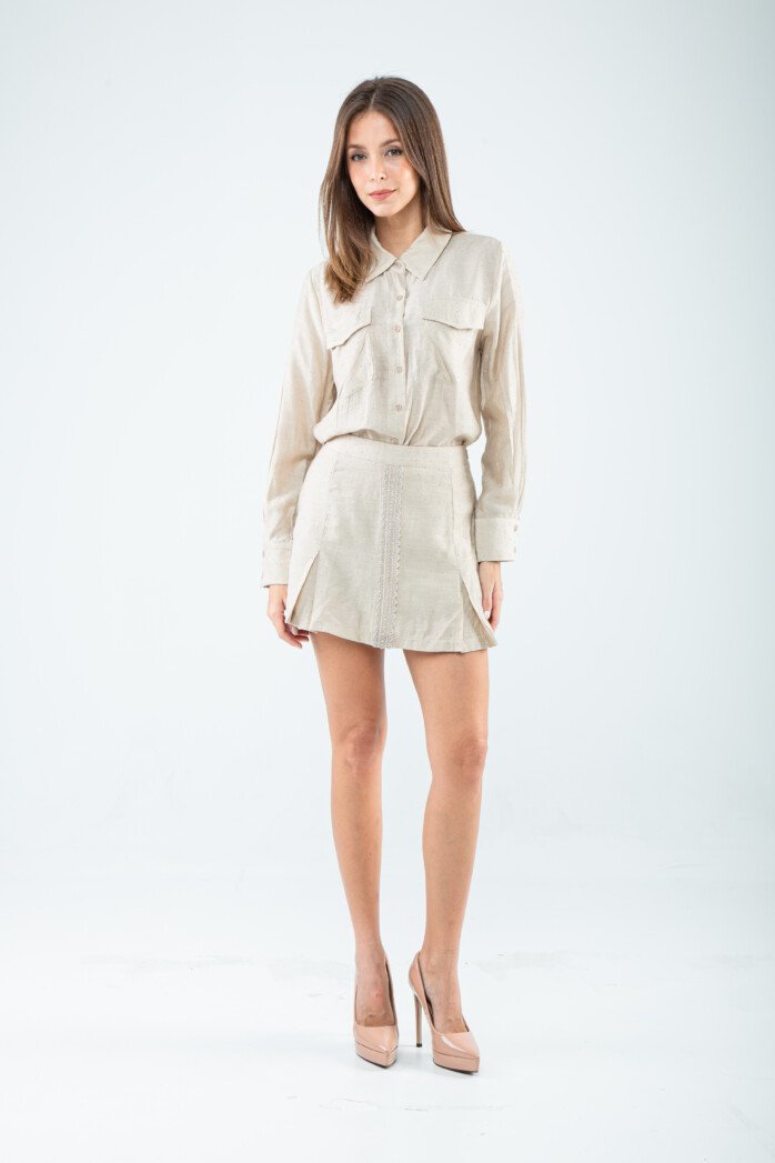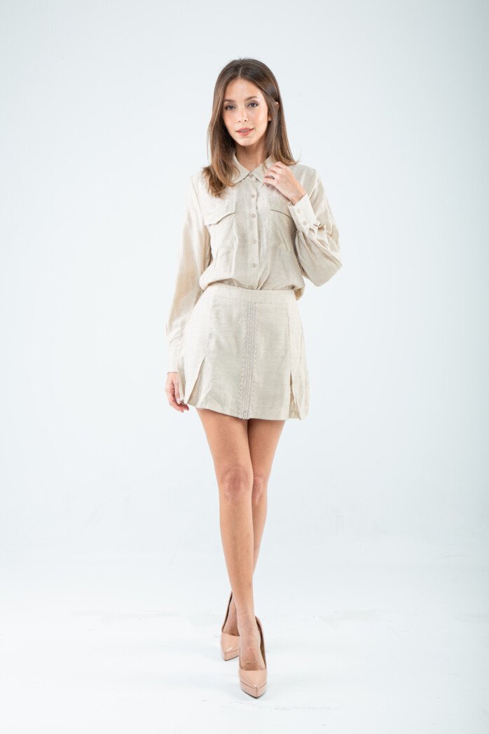 At the back, a classic box pleat introduces gentle volume and ease, allowing the silhouette to move with effortless grace. Versatile to its core, this piece shifts seamlessly from workday precision to off-duty charm. Dress it up for formal polish, pare it down for semi-casual confidence, or style it relaxed for weekend hangouts and tea dates. Simple, sweet, and wonderfully mix-and-match friendly, it’s the kind of wardrobe essential that makes everyday sophistication feel completely natural.