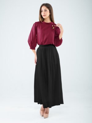 Crafted in a smooth, polished polyester-blend fabric, it drapes with elegance and pairs seamlessly across your style repertoire. Think of it as your ultimate mix-and-match staple: sleek enough for the boardroom, refined enough for dinner dates, and effortlessly polished for leisurely moments. A study in simplicity and sophistication, this piece is designed to move with you—wherever your day (or night) leads.