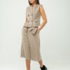 Finished with a coordinating belt to cinch the waist, the look feels considered and complete. Minimal yet impactful, these trousers move effortlessly between settings—styled with a crisp blouse for work, a fitted knit for understated chic, or a relaxed tee for modern off-duty refinement. It’s a masterclass in mix-and-match dressing: clean, sharp, and endlessly versatile.