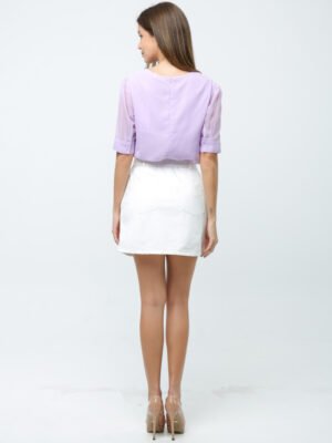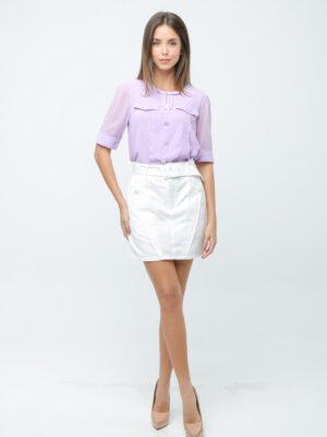 Smart tailoring meets playful sophistication in this high-waist belted mini skirt—a refined essential for the modern woman’s wardrobe. Crafted from a smooth cotton-polyester blend, it offers both structure and ease, with an easy-iron finish perfect for busy days. The front panels feature elegant ala-collar design details that add a distinctive, fashion-forward edge, while side pockets and back patch pockets balance practicality with polish. Designed to transition effortlessly from work to weekend, this piece embodies the versatility of chic dressing—pair it with crisp shirts for the office or soft blouses for date nights and day outings. Fun, semi-casual, and undeniably chic, it’s the epitome of smart, feminine confidence.