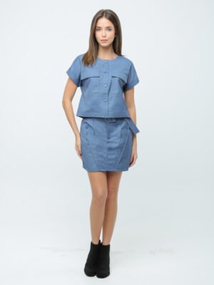 Smart tailoring meets playful sophistication in this high-waist belted mini skirt—a refined essential for the modern woman’s wardrobe. Crafted from a smooth cotton-polyester blend, it offers both structure and ease, with an easy-iron finish perfect for busy days. The front panels feature elegant ala-collar design details that add a distinctive, fashion-forward edge, while side pockets and back patch pockets balance practicality with polish. Designed to transition effortlessly from work to weekend, this piece embodies the versatility of chic dressing—pair it with crisp shirts for the office or soft blouses for date nights and day outings. Fun, semi-casual, and undeniably chic, it’s the epitome of smart, feminine confidence.